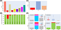 The resulting scores provide an estimate of the relative influence of lithofacies or better associations (FAs) on the log domain. The targeted prediction score, which has been considered to be statistically acceptable, is set to 80%. Outcomes can be displayed on the vertical axis of the ternary diagram in Figure 3C or visualized as contingency tables, in stacked bar diagram format (respectively, Figure 4B, C). Figure 3C graphically captures the relative contribution to flow of three typical carbonate pore systems in a ternary diagram (following Ahr, 2006): (1) depositional matrix, (2) diagenetically modified matrix, and (3) fractures or high-permeability pathways. The corners of the ternary diagram represent RT end members whose identification greatly simplifies understanding petrophysical behavior and geological influence. Skalinski and Kenter (2015) labeled the “center” area as hybrid or RT4 and argued that RTs could be defined from various data types such as but not limited to core-to-log analysis, petrography, SCAL data (MICP), NMR and BHI logs, or any combination of these. Furthermore, they proposed that RTs are associated with unique spatial trends and patterns. Figure 3C shows FA prediction results—the relative vertical positions—for several published marine reservoirs (Saneifar et al., 2015; Skalinski and Kenter, 2015) as well as for the four case studies analyzed in this paper. The relative