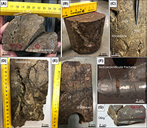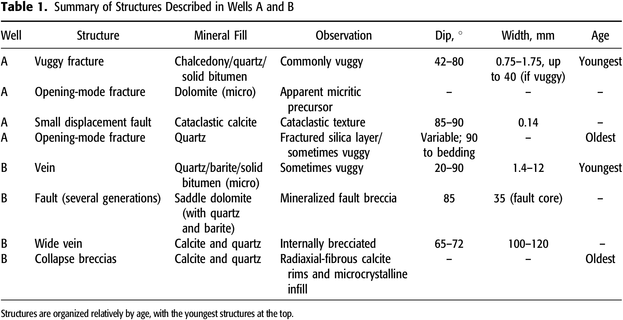 We list below the visible structures in the core and organize them according to their relative age based on crosscutting and abutting relationships (Table 1). We show an individual scheme for the sequence of brittle structures found in each well.