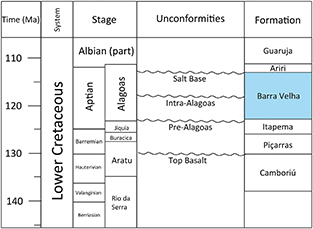 Figure 2. Lower Cretaceous stratigraphic chart for the Santos Basin (modified from Moreira et al., 2007; Wright and Barnett, 2015).